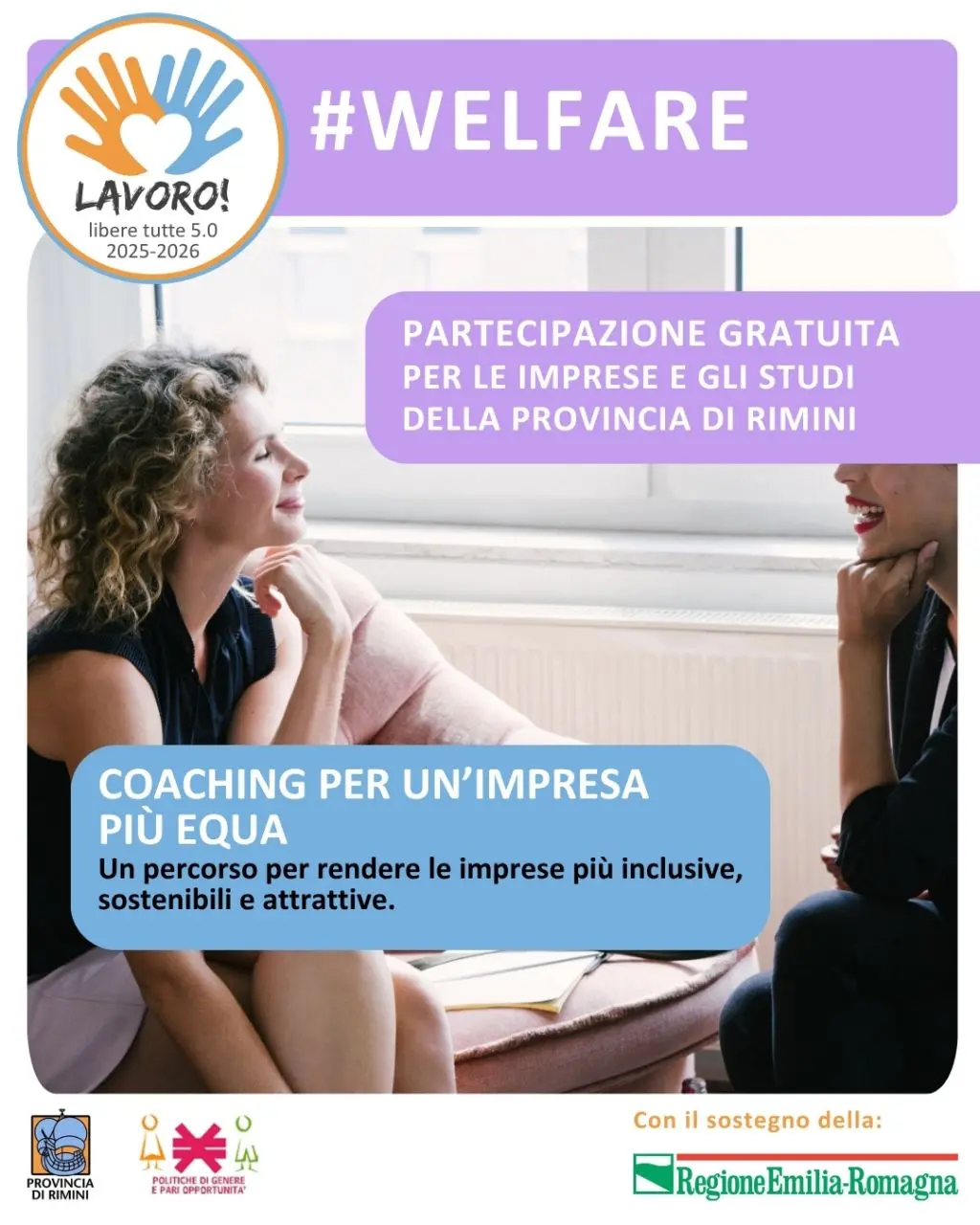 Un percorso di coaching personalizzato per imprese e professionisti della provincia di Rimini che vogliono migliorare il benessere organizzativo, promuovere parità di genere e welfare aziendale, e rendere la propria realtà più sostenibile e motivante.